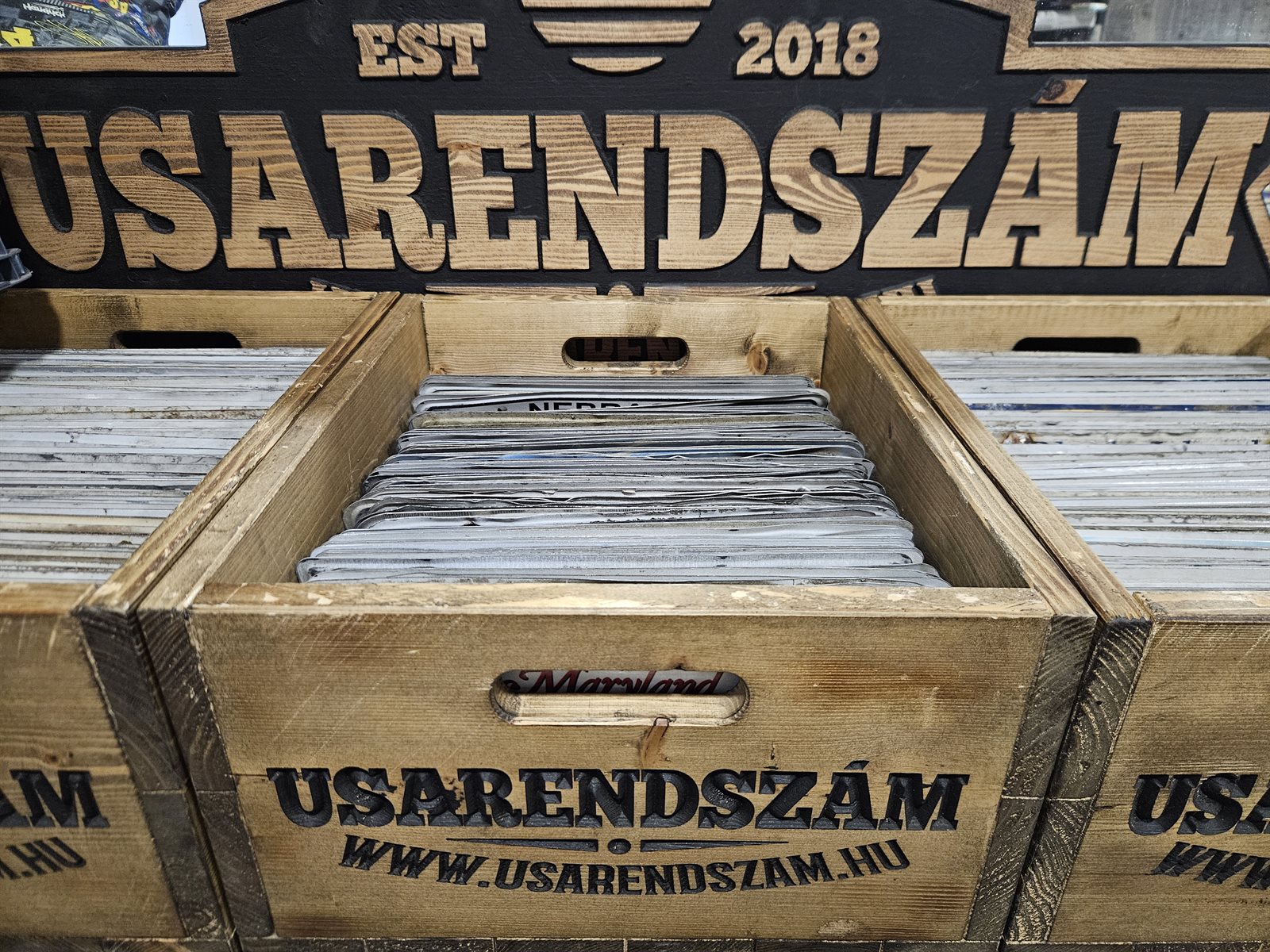 Eredeti használt amerikai rendszám dekorációs célra a képen látható állapotban