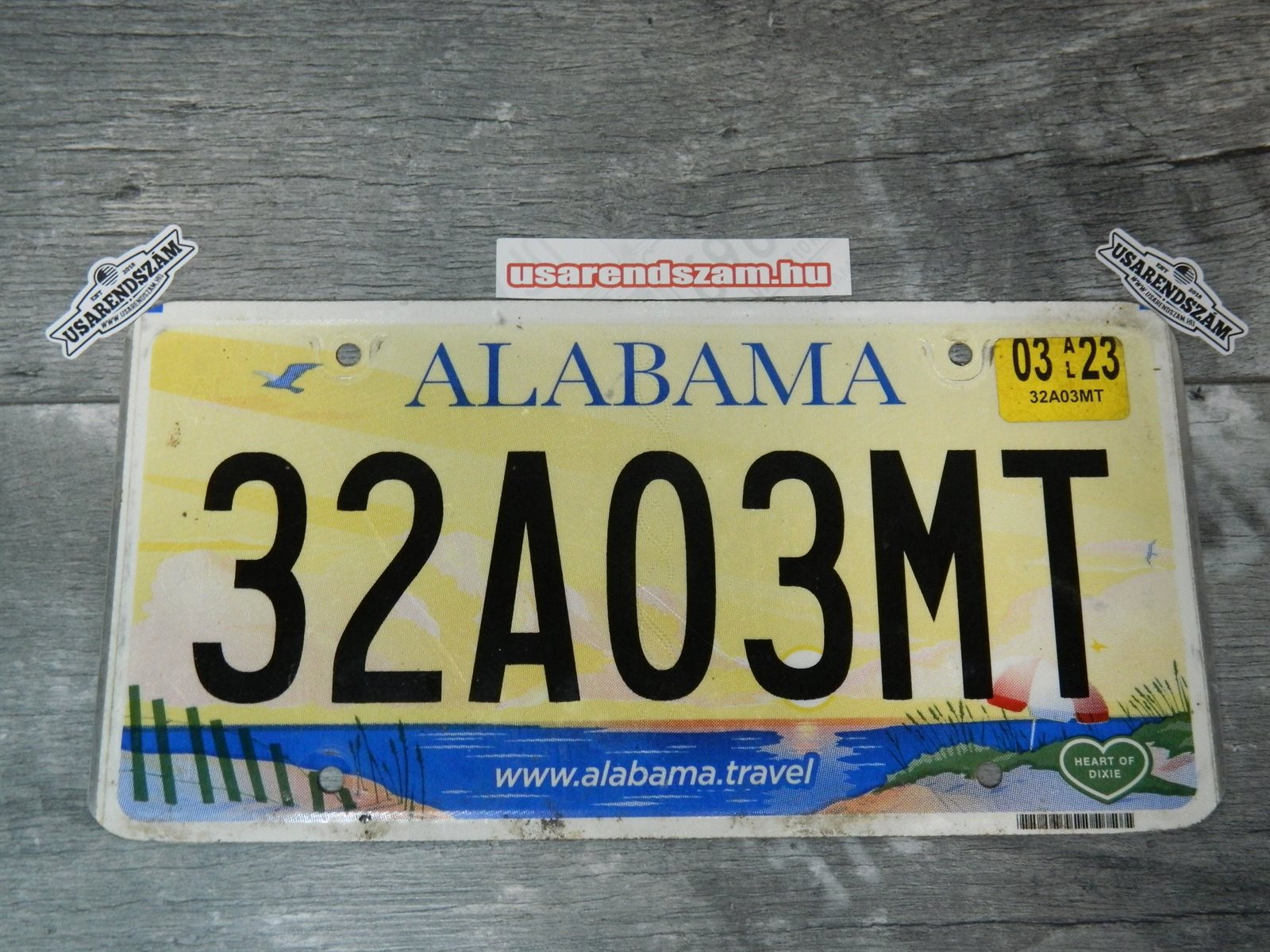 Eredeti, használt amerikai rendszám, dekorációs célra a képen látható állapotban.