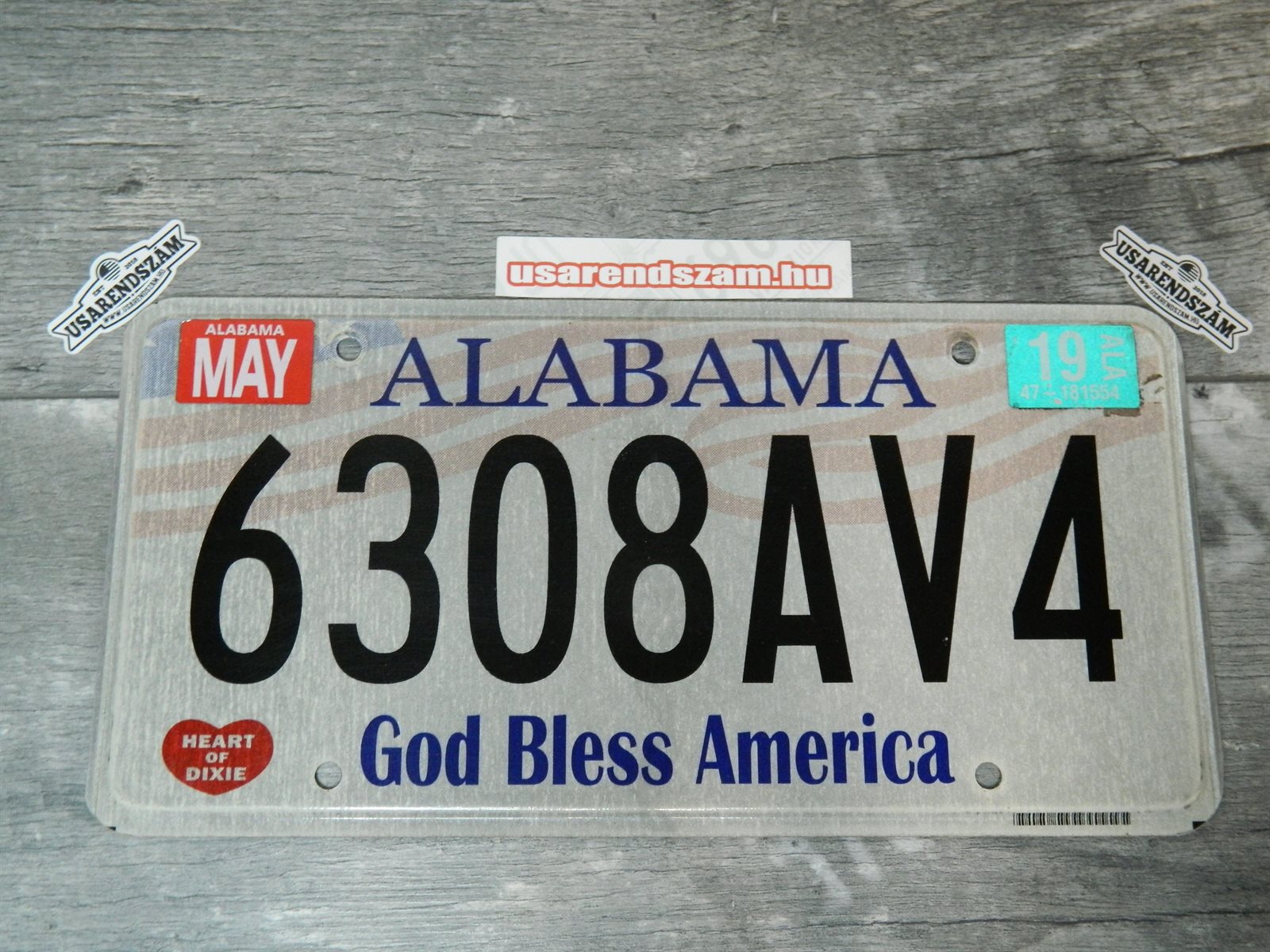 Eredeti, használt amerikai rendszám, dekorációs célra a képen látható állapotban.