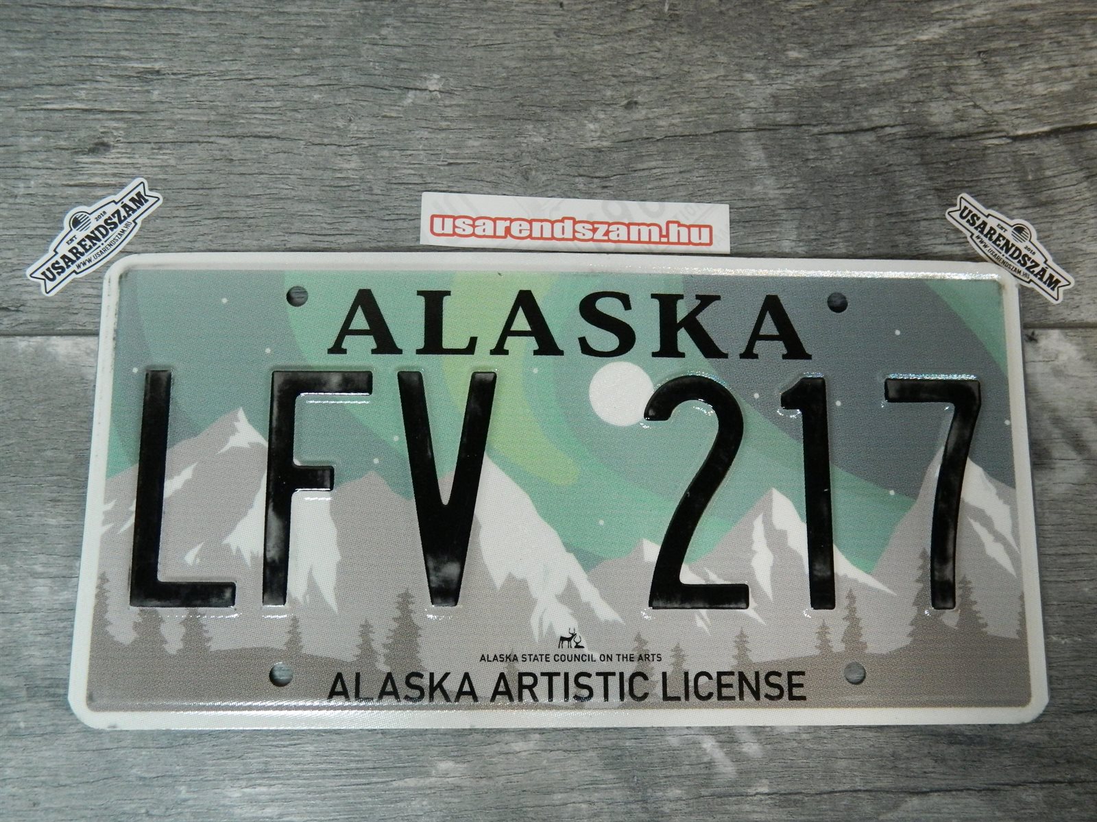 Eredeti, használt amerikai rendszám, dekorációs célra a képen látható állapotban.