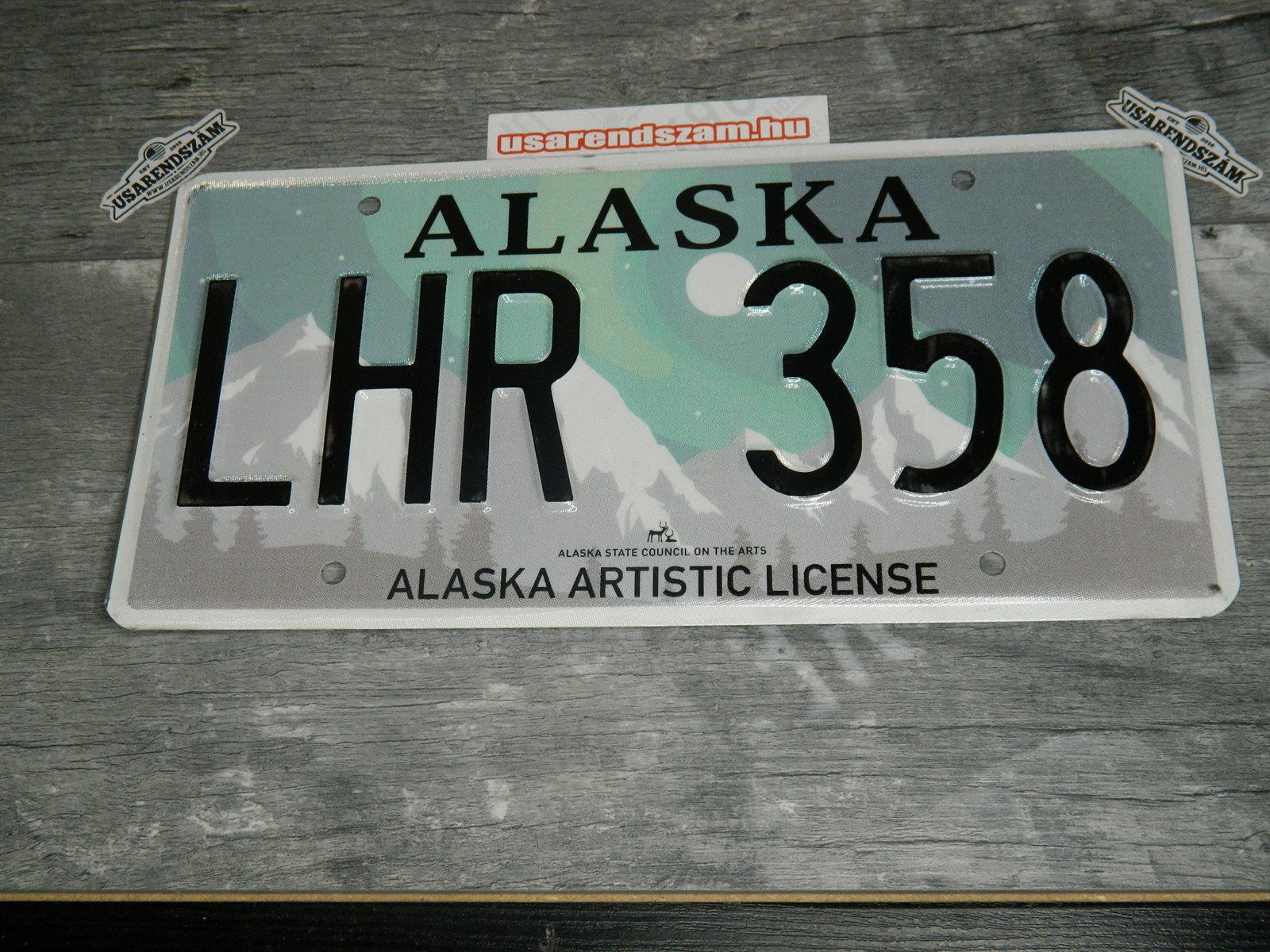 Eredeti használt amerikai rendszám dekorációs célra a képen látható állapotban