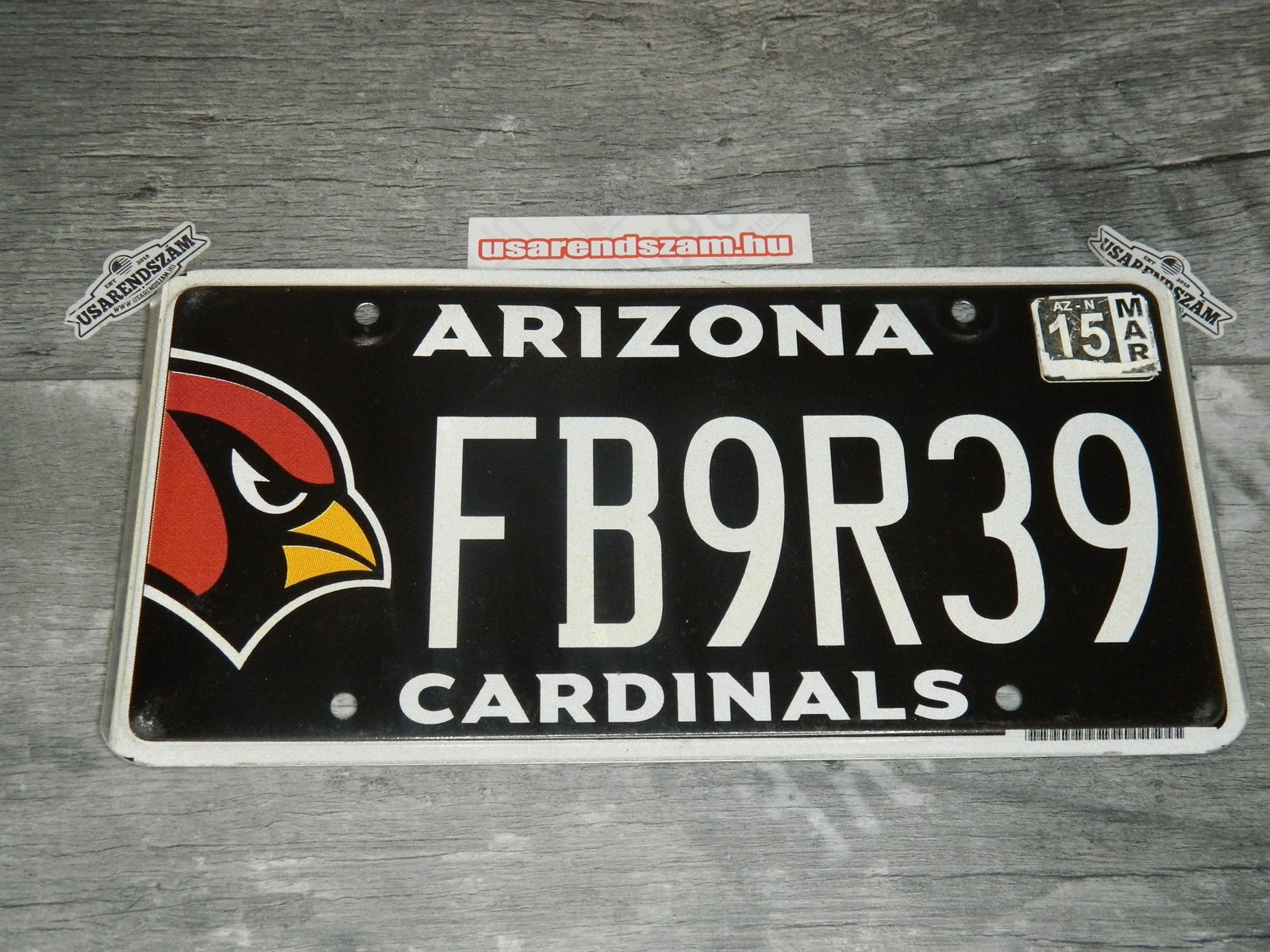 Eredeti használt amerikai rendszám dekorációs célra a képen látható állapotban