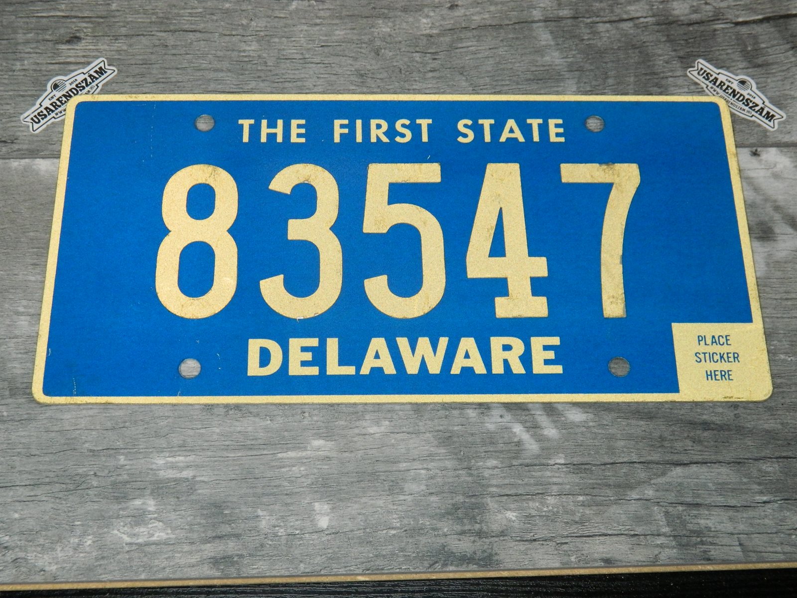 Eredeti használt amerikai rendszám dekorációs célra a képen látható állapotban