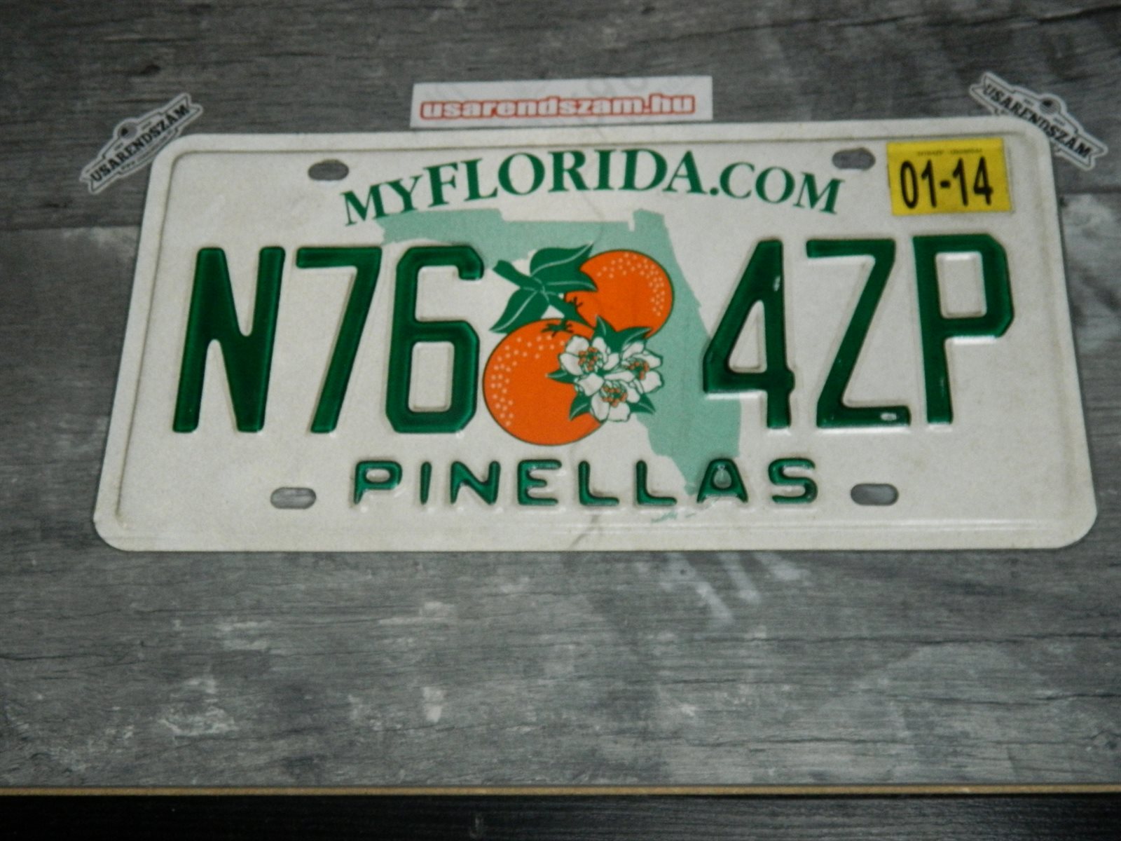 Eredeti használt amerikai rendszám dekorációs célra a képen látható állapotban