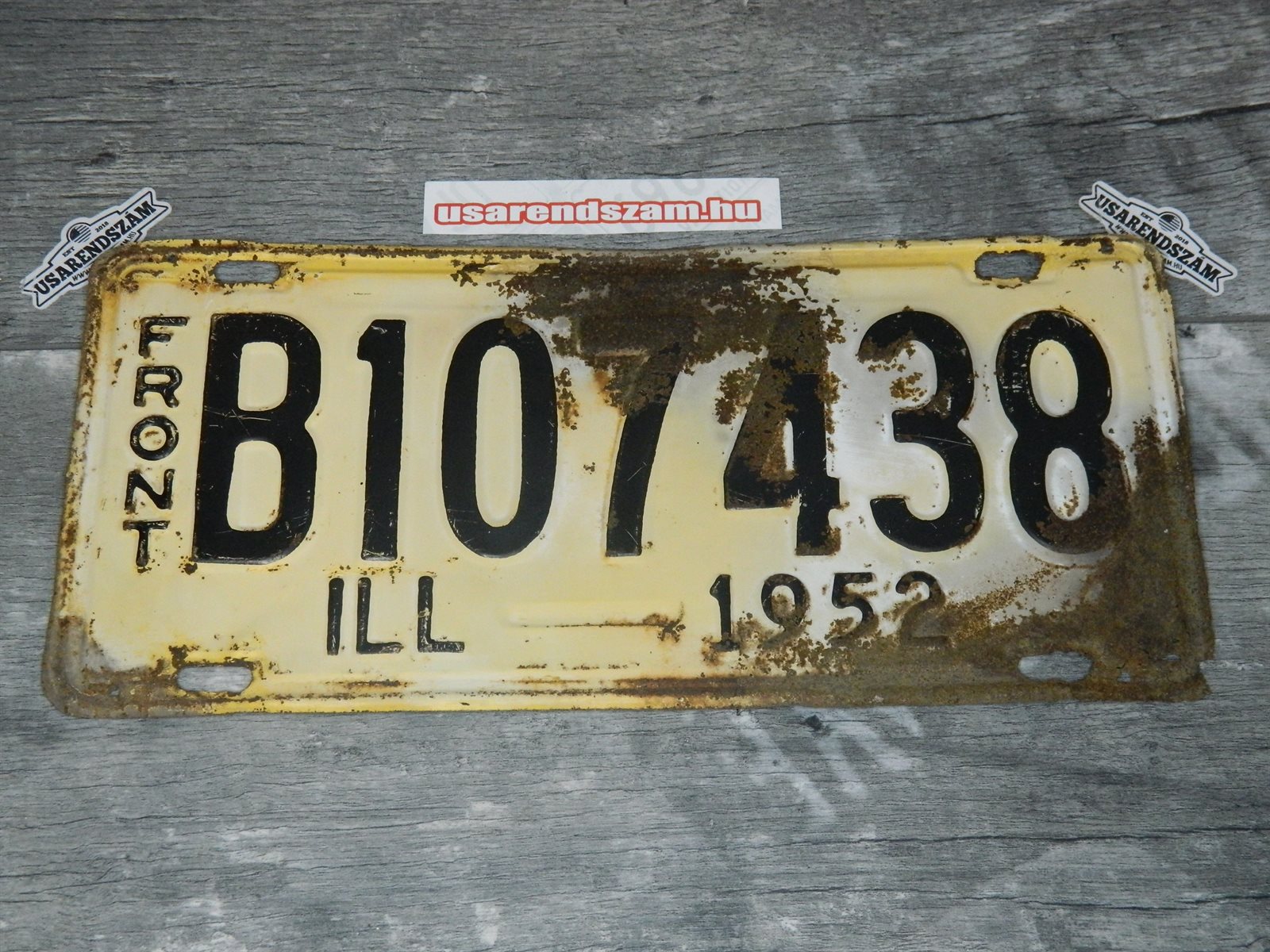 Eredeti használt amerikai rendszám dekorációs célra a képen látható állapotban