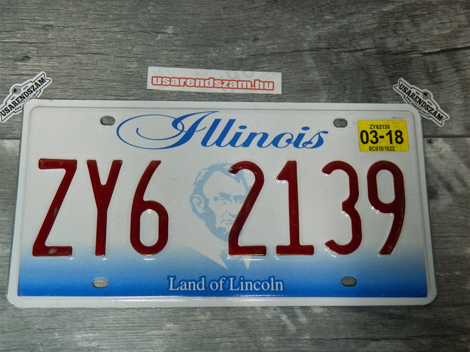 Eredeti, használt amerikai rendszám, dekorációs célra a képen látható állapotban.
