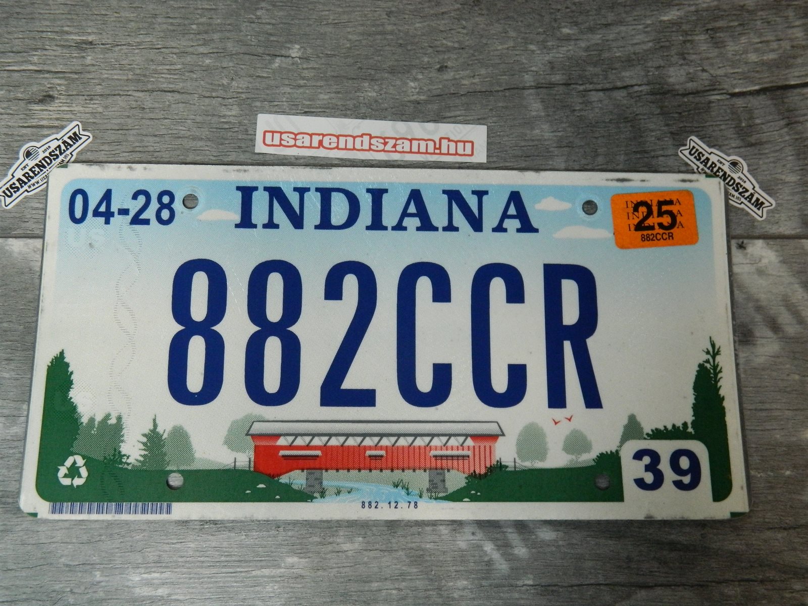Eredeti, használt amerikai rendszám, dekorációs célra a képen látható állapotban.