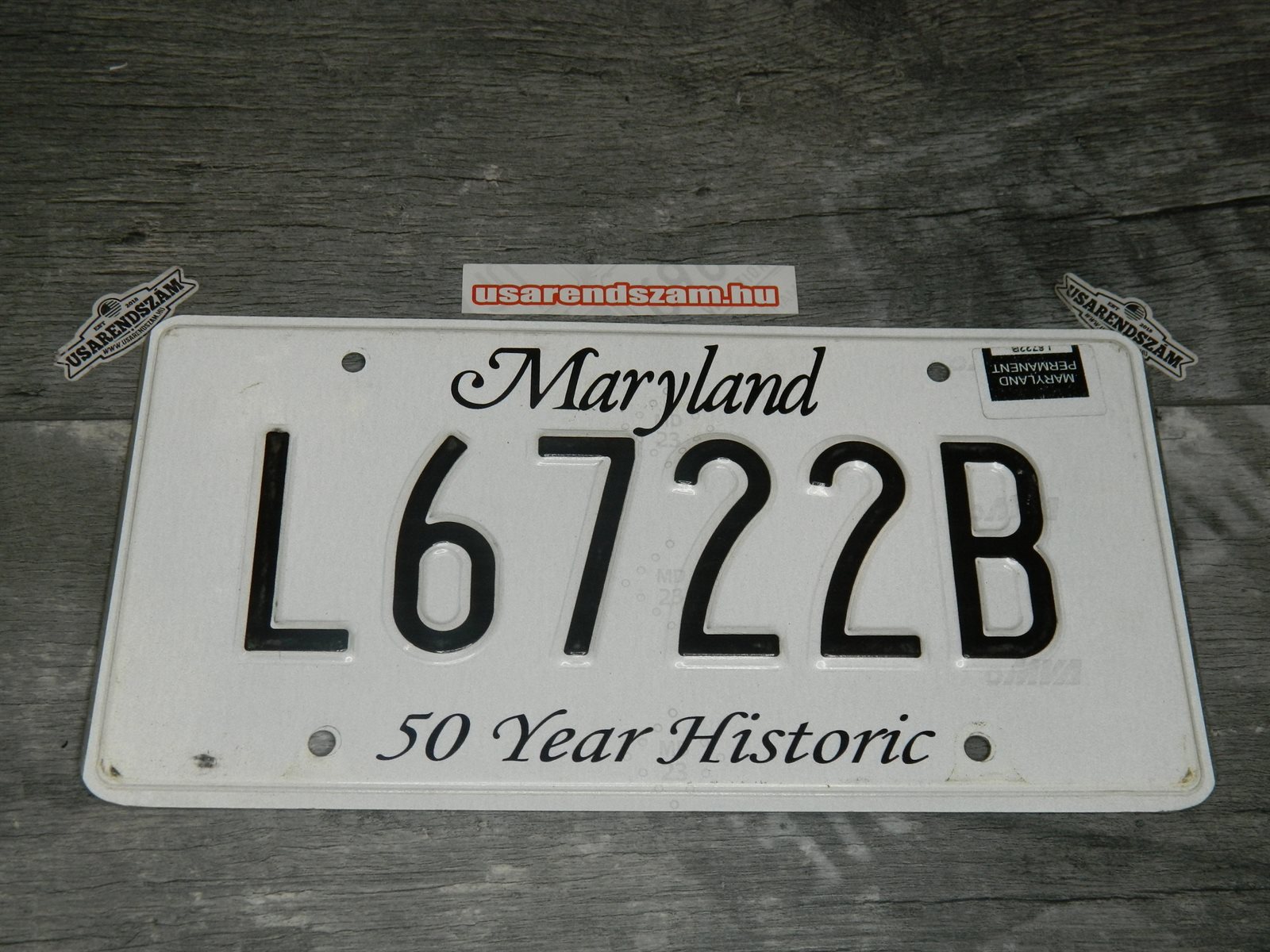 Eredeti használt amerikai rendszám dekorációs célra a képen látható állapotban