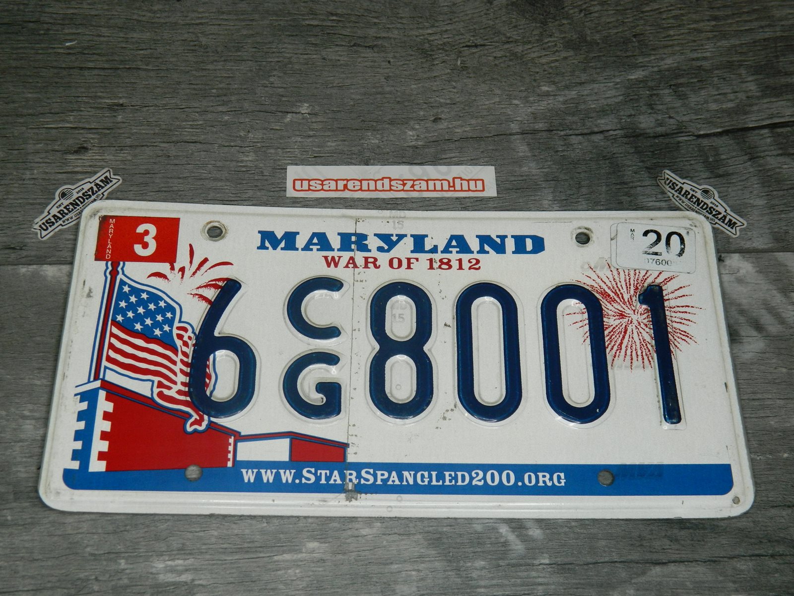 Eredeti használt amerikai rendszám dekorációs célra a képen látható állapotban