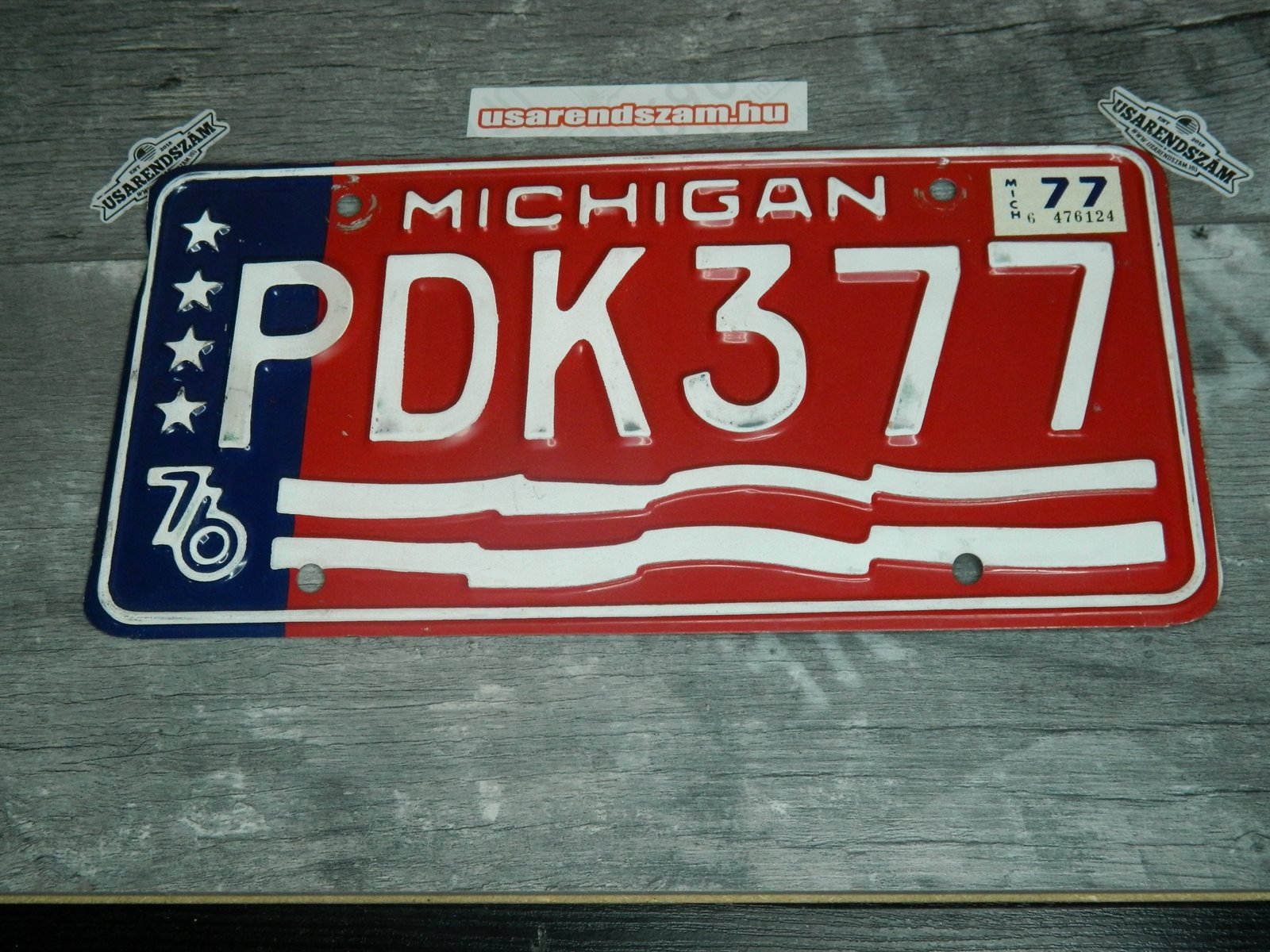 Eredeti használt amerikai rendszám dekorációs célra a képen látható állapotban