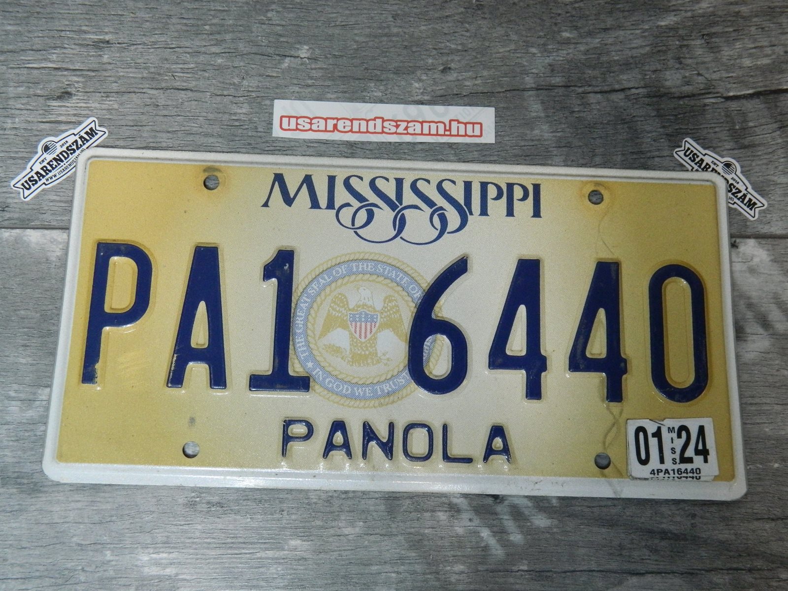 Eredeti, használt amerikai rendszám, dekorációs célra a képen látható állapotban.
