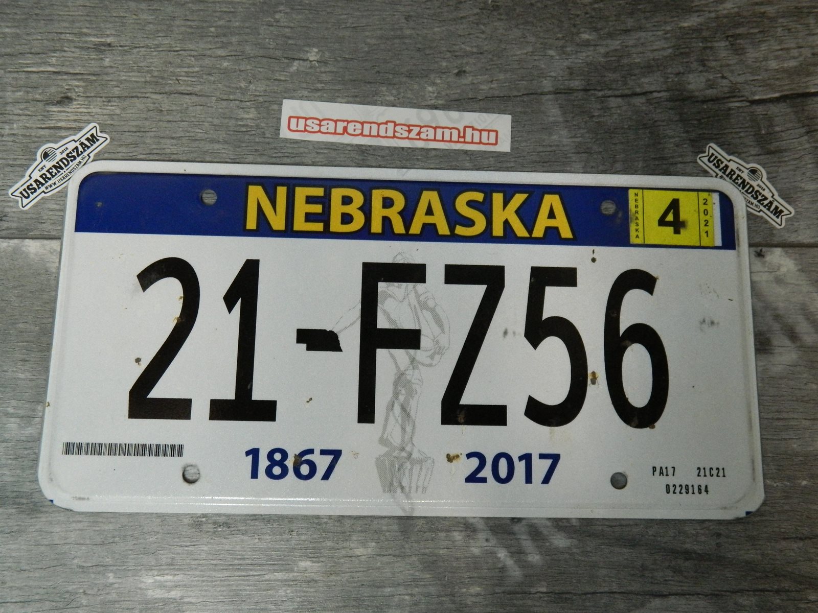 Eredeti, használt amerikai rendszám, dekorációs célra a képen látható állapotban.