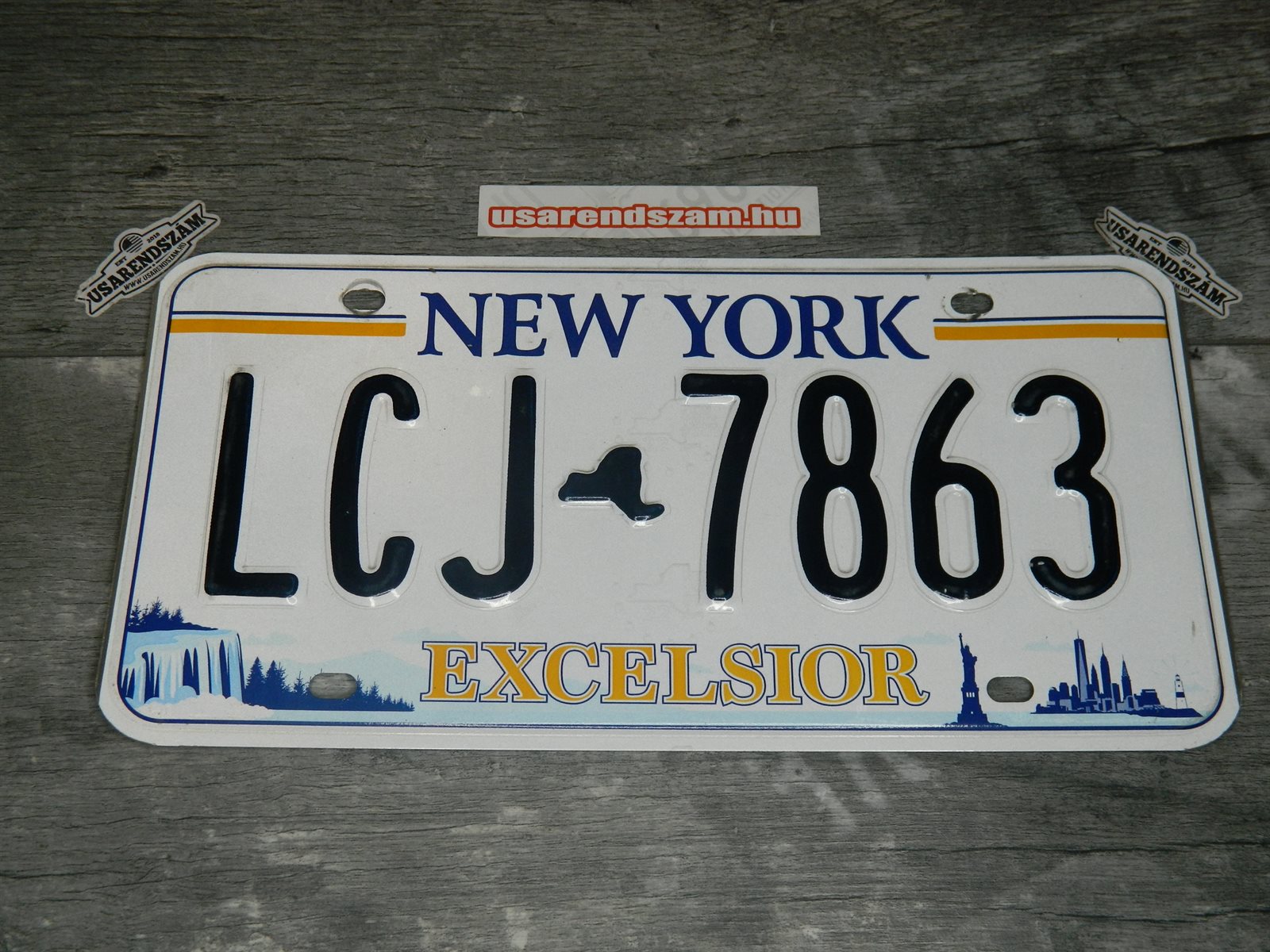 Eredeti használt amerikai rendszám dekorációs célra a képen látható állapotban