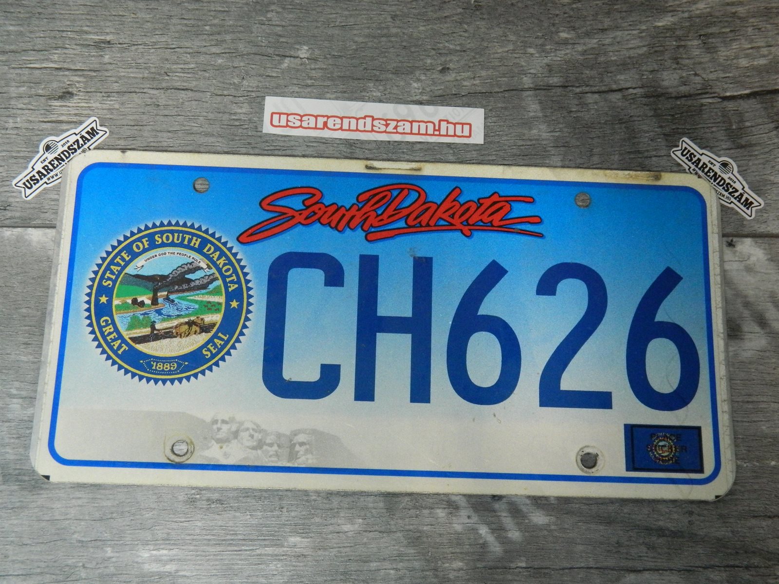 Eredeti, használt amerikai rendszám, dekorációs célra a képen látható állapotban.