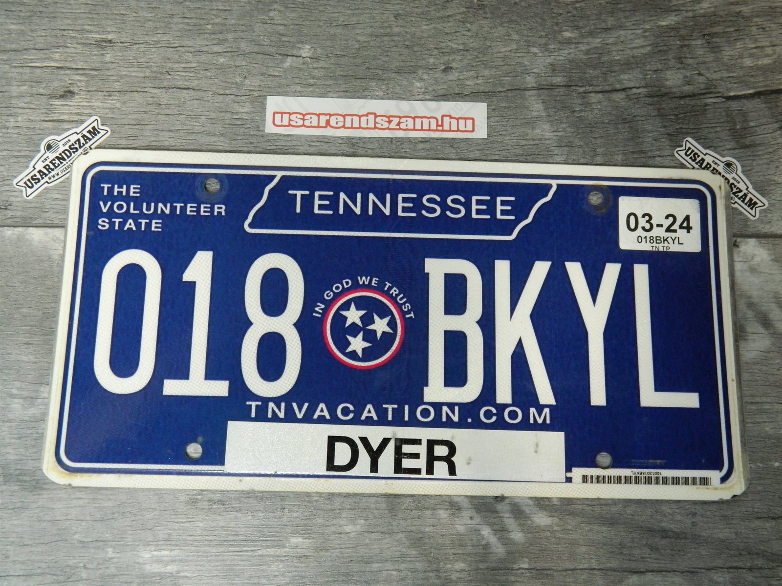 Eredeti, használt amerikai rendszám, dekorációs célra a képen látható állapotban.