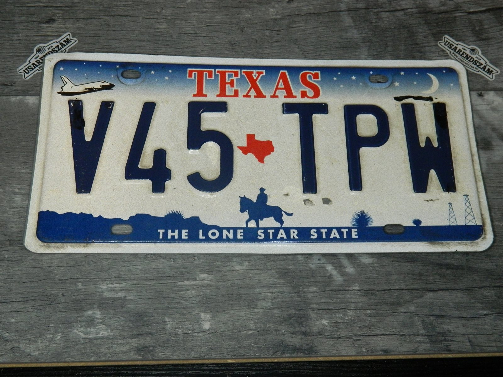 Eredeti használt amerikai rendszám dekorációs célra a képen látható állapotban