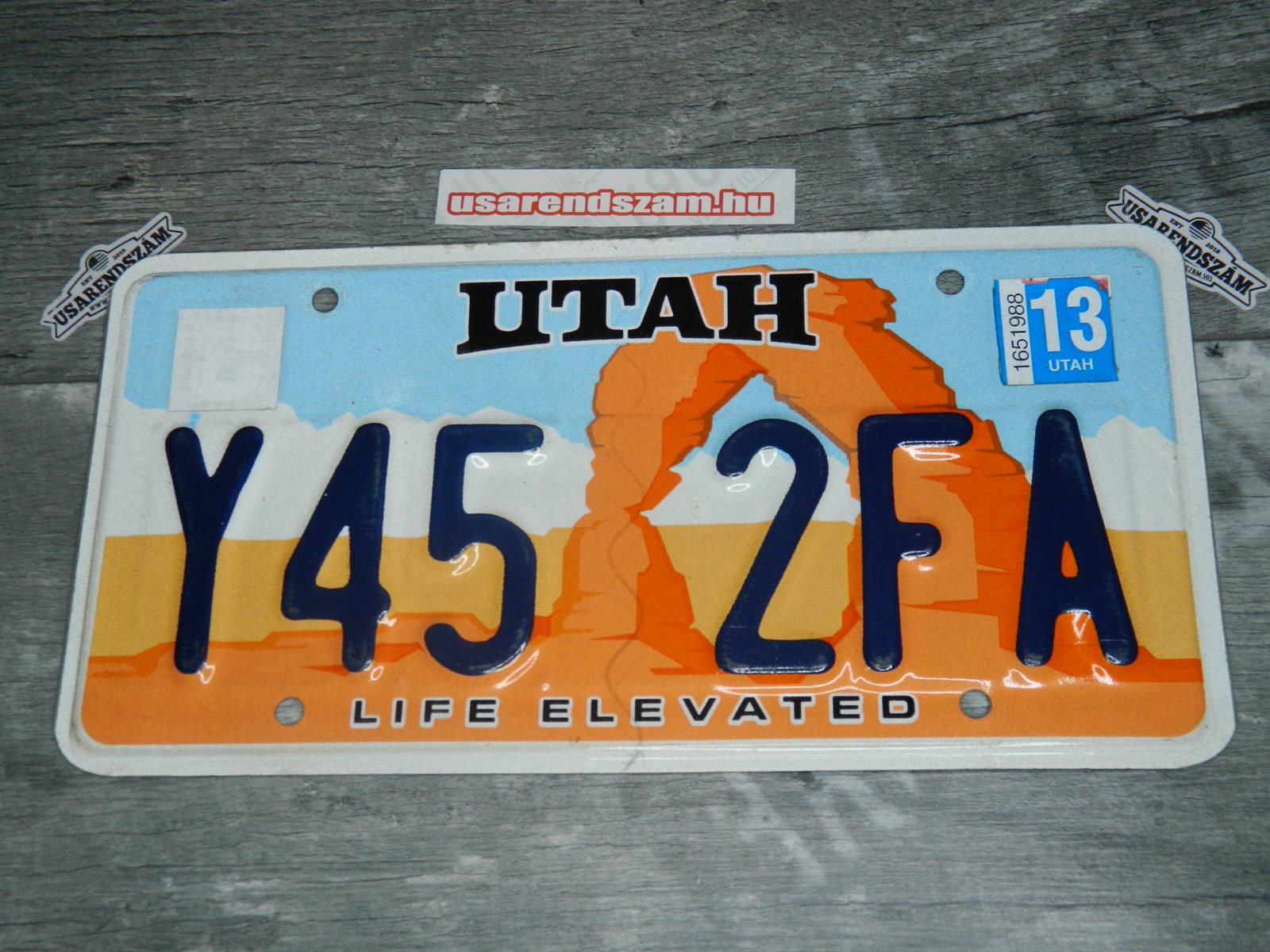 Eredeti használt amerikai rendszám dekorációs célra a képen látható állapotban