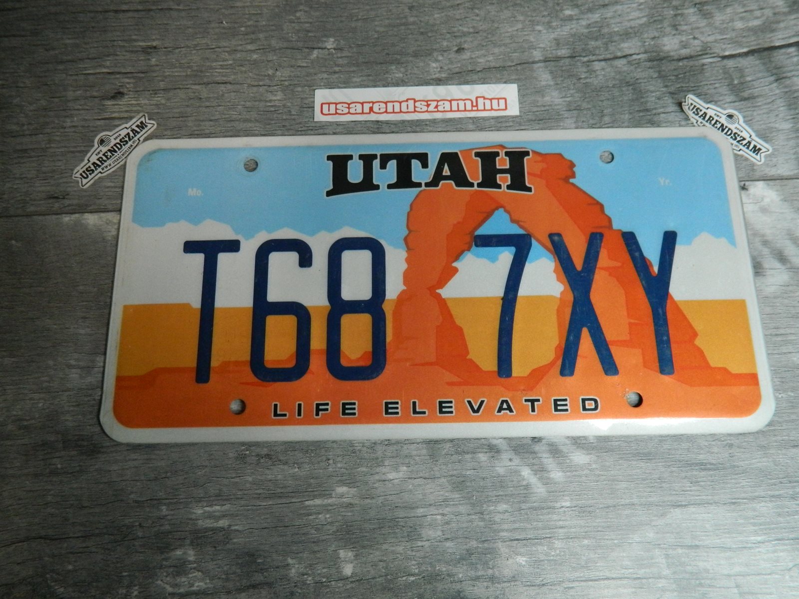 Eredeti használt amerikai rendszám dekorációs célra a képen látható állapotban