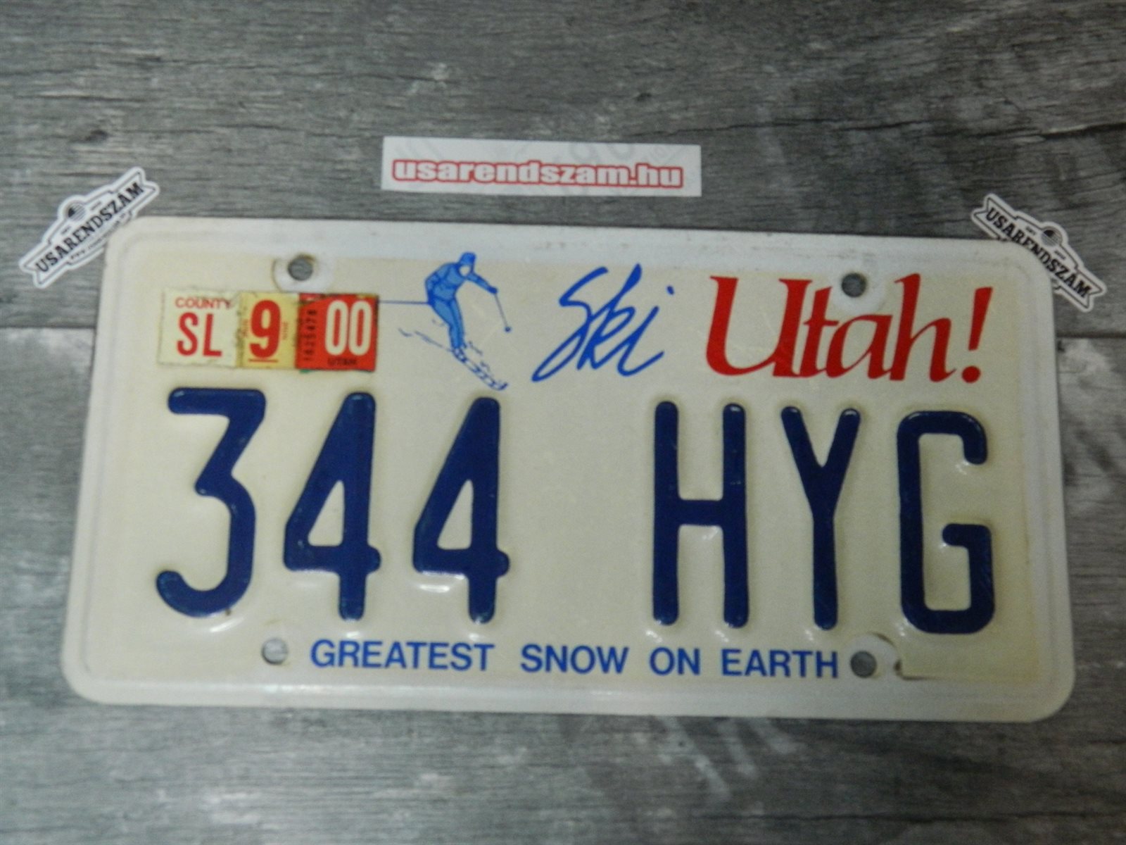 Eredeti, használt amerikai rendszám, dekorációs célra a képen látható állapotban.