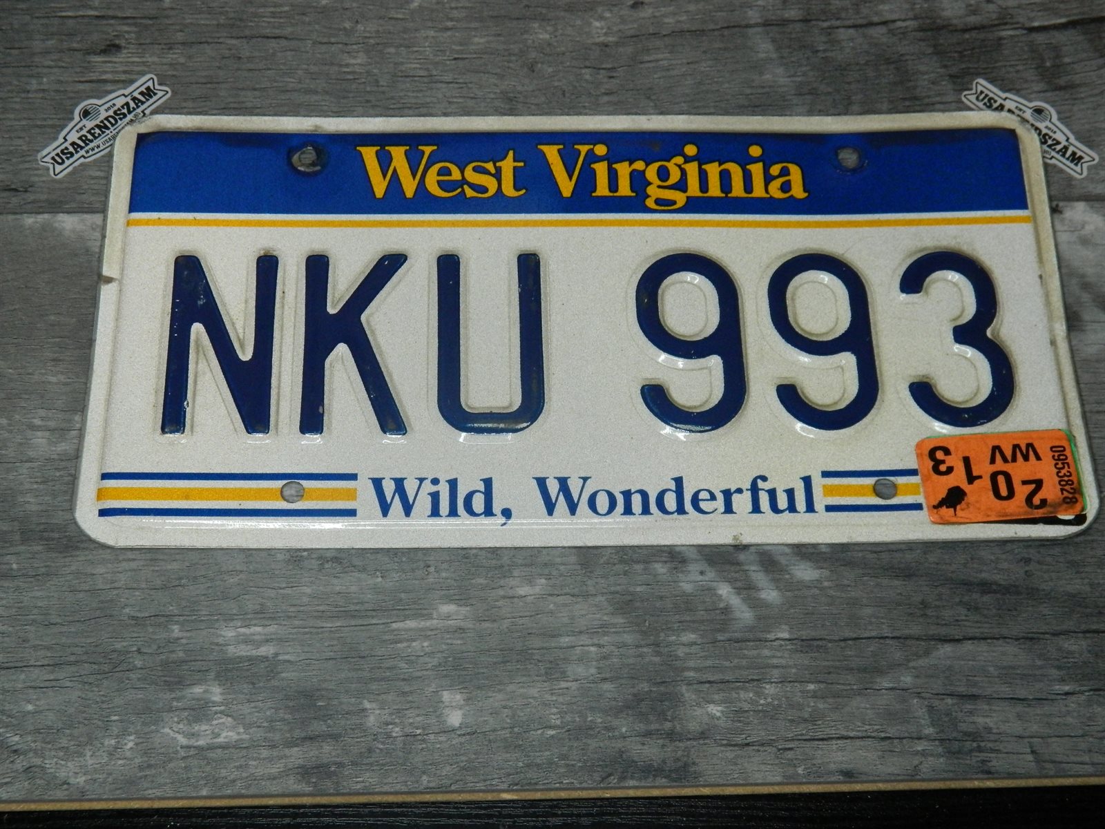 Eredeti használt amerikai rendszám dekorációs célra a képen látható állapotban